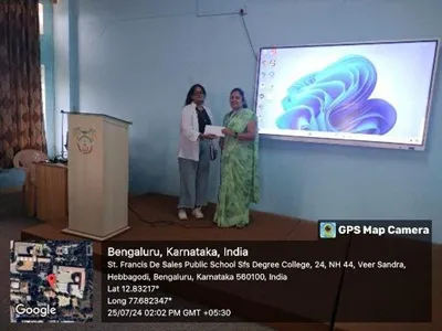 On 25th July 2024 the Department of Business Administration Program In charge Assistant Professor. Raman deep Kaur organized a session by Alumni Student Ms. Ruchita.S In a recent alumni session, Ms. Ruchitha S. an esteemed graduate of St. Francis De College, generously shared her invaluable experiences and perspectives with current students. Her insights provided a vivid picture of life at the college, focusing on various aspects such as faculty, facilities, and the overall learning environment. This note aims to encapsulate the essence of her discussion, offering a glimpse into what future juniors can expect from their educational journey at St. Francis De College.