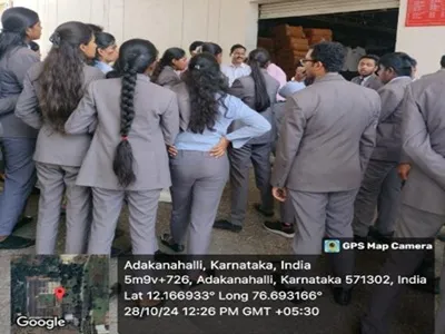 The BBA students embarked on an industrial visit to Reid & Taylor's facility in Mysore, led by faculty coordinators Gulla Keerthi and Ms. Sonia. The visit commenced with an introduction to the company's history and its evolution within the textile industry. The students were then given a tour of the manufacturing unit, where they observed different phases of textile production, including spinning, weaving, dyeing, and finishing.
